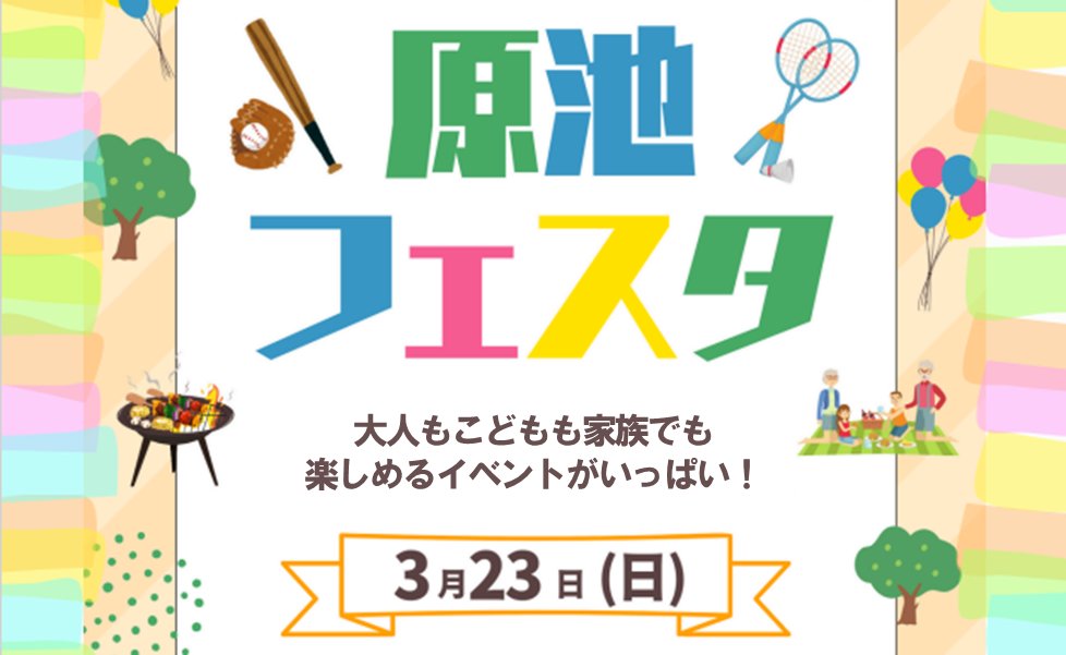 /3/23㊐は原池フェスタに行こう!\キッチンカーやフリーマーケット、当日参加できるイベントもあります大人もこどももお楽しみいただけます。ぜひご来場ください!場所:原池公園時間:9時~16時詳しくは↓..