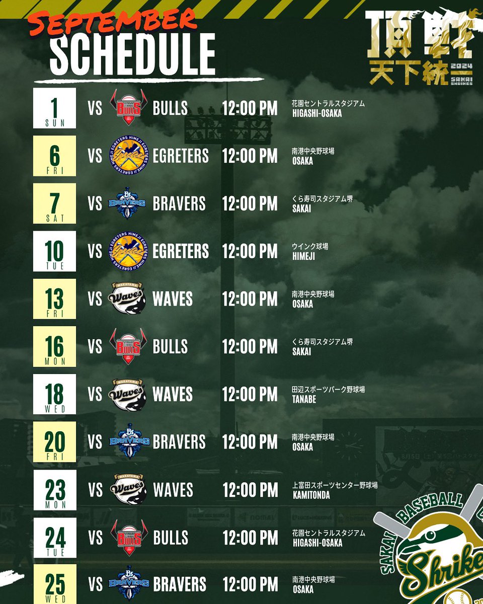 -9月-𝑺𝑪𝑯𝑬𝑫𝑼𝑳𝑬※変更があった為再投稿※勝負の9月是非試合会場にてお待ちしております#堺シュライクス#頂戦