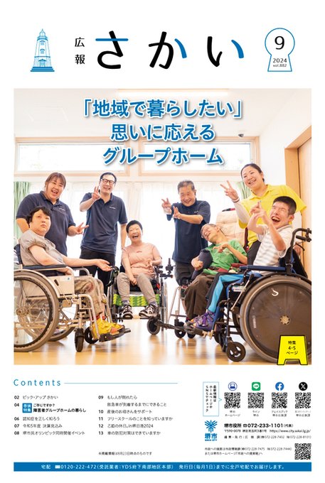 堺市にお住いの皆様に全戸配布の「広報さかい」、最新号はネットでもご覧になれます。グループホームをご紹介する巻頭特集をはじめ、災害への備え、子ども対象の万博招待、各種相談窓口など今回も盛り沢山でお届けし..
