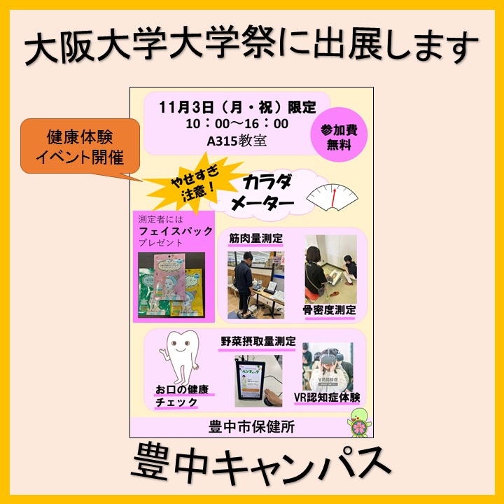 【11月3日(月・祝)大阪大学大学祭(まちかね祭)に健康体験イベントを出展します!】大阪大学豊中キャ..