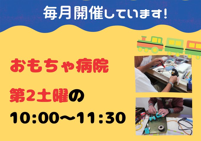 \壊れてしまったおもちゃはありませんか?/毎月第2土曜日『おもちゃ病院』がやってきますこわれたおもちゃの診察と治療を行います!日時9月13日(土)10:00~11:301世帯1点まで診療は無料部品交換..