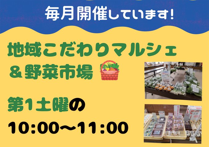 \とれたて野菜販売!/当センターでは、毎月第1土曜日、『地域こだわりマルシェ&野菜市場』を開催しています。地域のお店のこだわり品とれたて新鮮野菜を販売しています!ぜひお越しください次回9月6日..