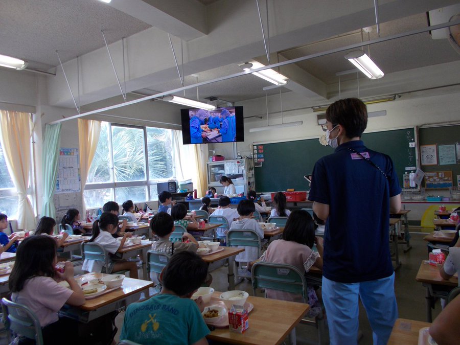 #学校給食課です!今週は、#桜井谷東小学校1年のクラスへ「なるほど給食」で訪問しました。質問タイムではカレーのルゥについての質問や調理温度に関する事どこのお米を使っているの?など1年生ながら良い質問が..