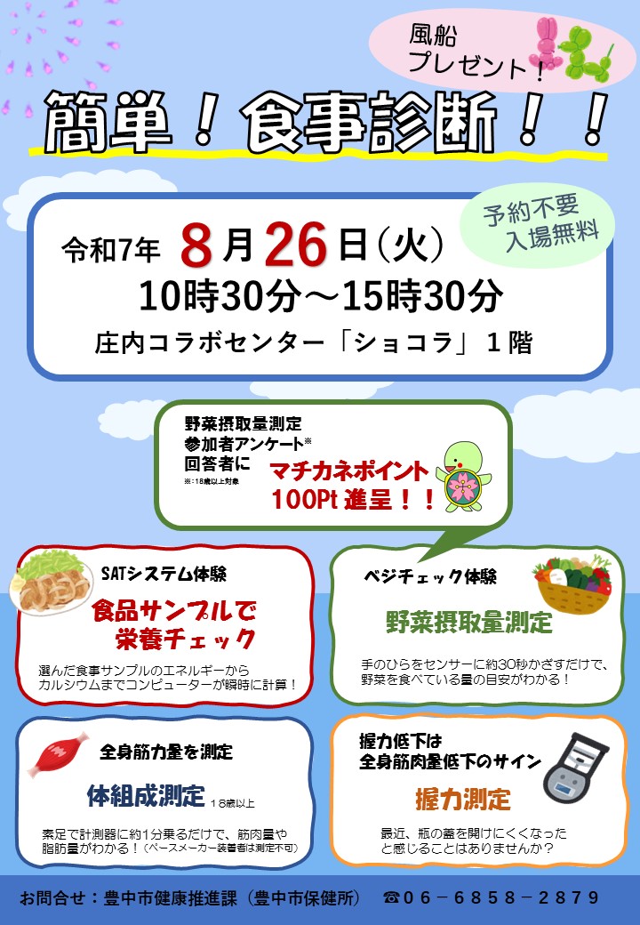 栄養バランスが気になる方必見8/26(火)に#庄内コラボセンターにて食品サンプルによる栄養チェックや、#全身筋肉量#野菜摂取量を測定できるイベントを開催します。野菜摂取量測定後に電子アンケート回答者に..