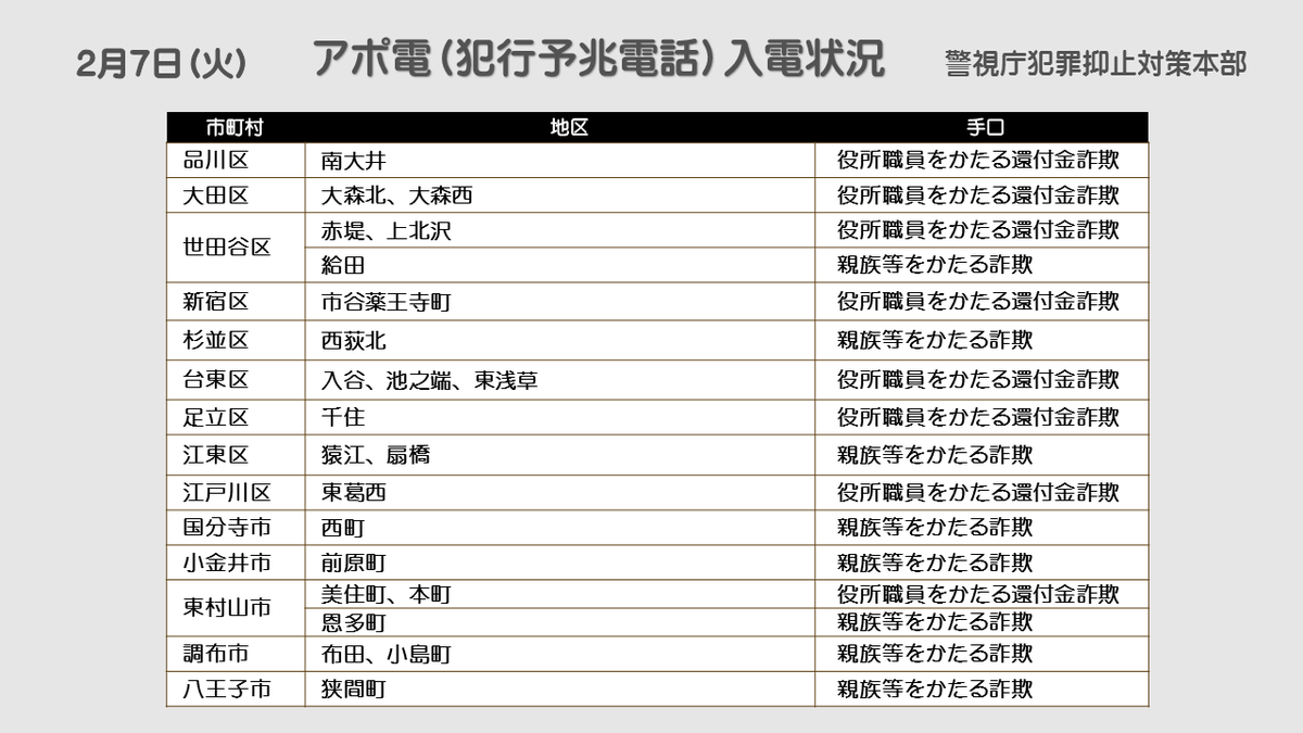 【アポ電(大田区田園調布 他) - 2月3日[東京都]|ガッコム安全ナビ
