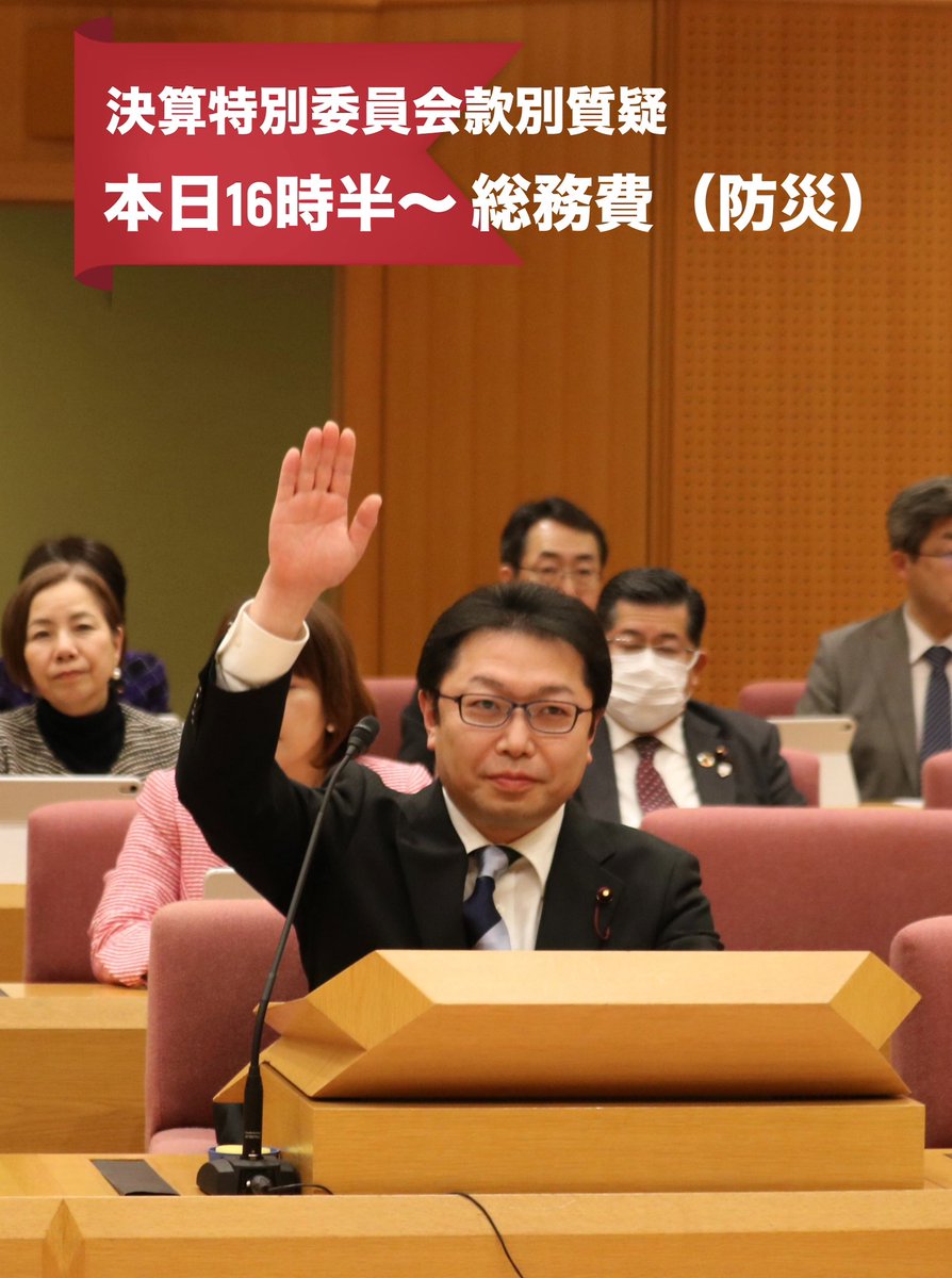 大田区議会第3回定例会本日から決算特別委員会が本格的にスタートします。各会派の総括質疑の後、分野ごとに質疑をする、款別質疑が行われます。私も午後に、総務費で防災について質疑予定です。#大田区議会#決算..
