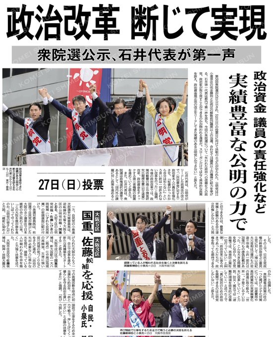 【衆院選公示、石井代表が第一声】政治改革、断じて実現/実績豊富な公明の力で/政治資金巡る議員の責任強化など#公明新聞電子版2024年10月16日付https://komei.or.jp/newspap..