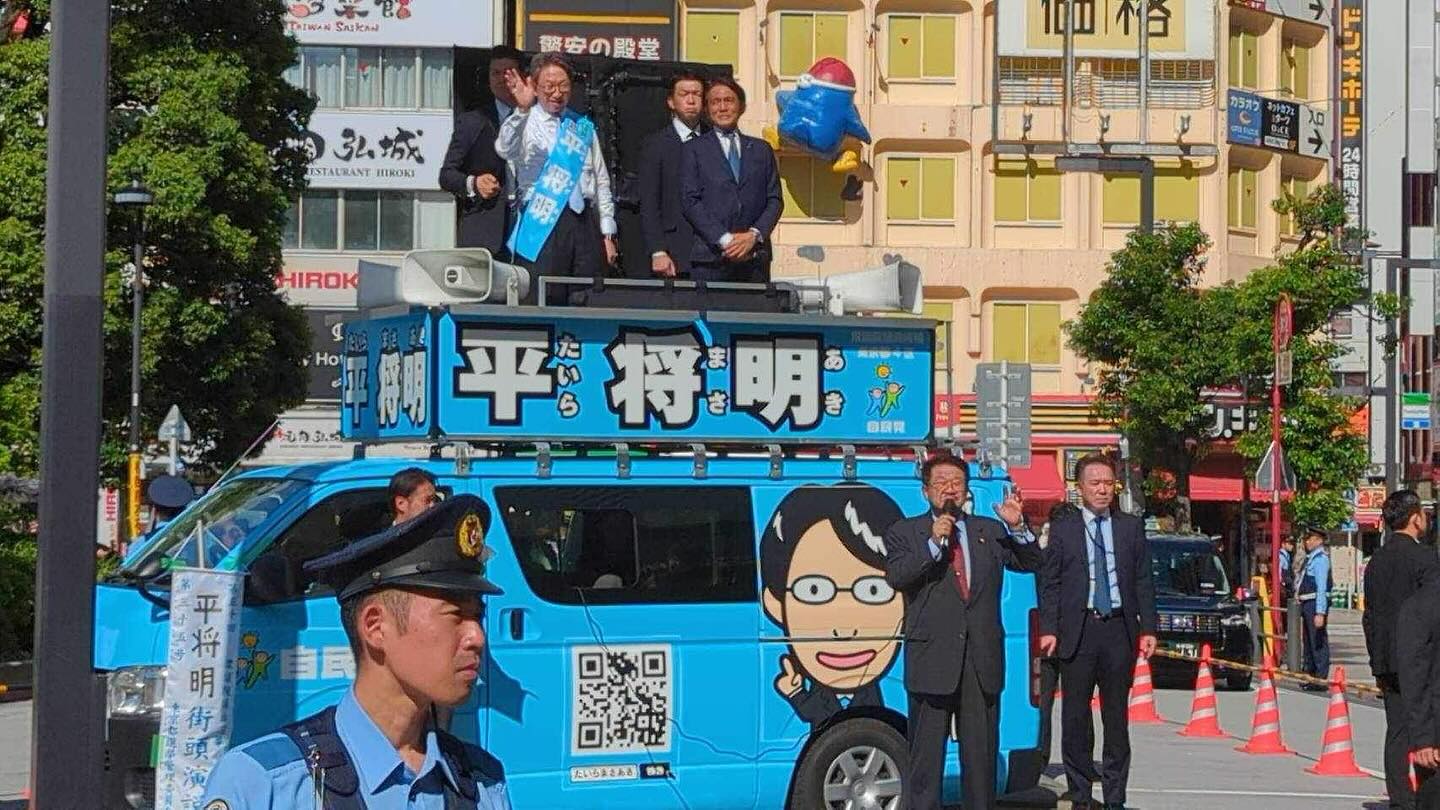 東京メトロ東陽町にデコチャリ須藤元気候補が到着これから駅前にて街頭演説が始まります!!#江東区#東京15区