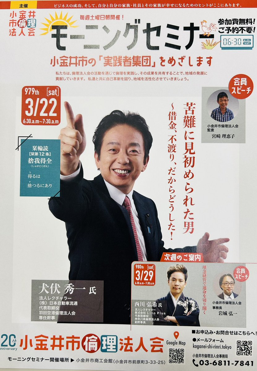 今朝は小金井市商工会館で講話の機会をいただきました。丁度、小金井市は市議会選挙中。配布されたチラシ、正に選挙バージョンで、ビックリ
