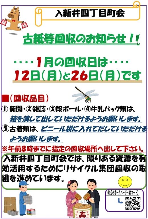 リサイクル集団回収のお知らせ(令和8年1月12日・26日)