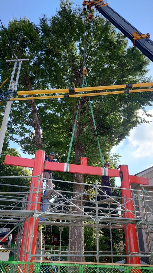 (お知らせ)本日の立柱式は13時〜となりました。#川越八幡宮#鳥居#川越#小江戸川越#神社#宇佐神宮#八幡宮#川越市