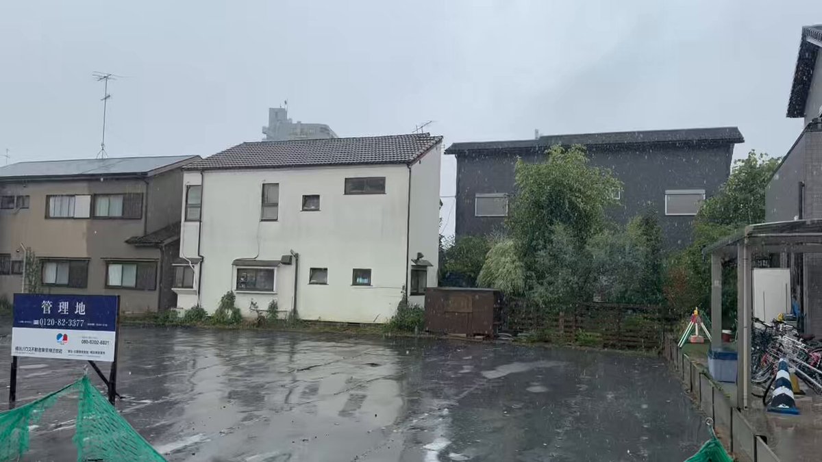 わかりづらいですがいまこんな天気です。急に強くなったり急に弱くなったりで、いかにも台風という感じですね!