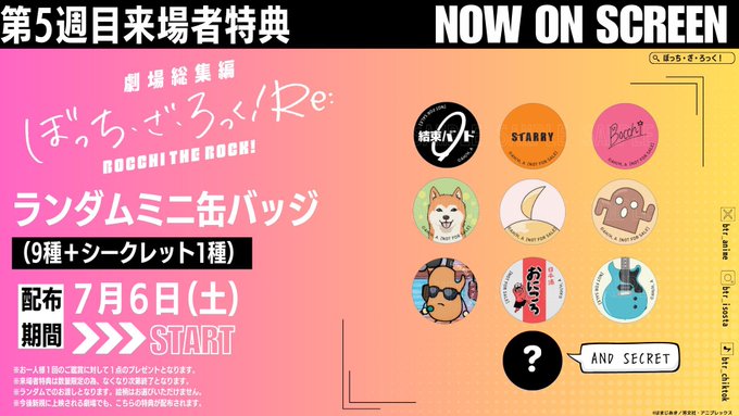 【来場者特典配布終了のお知らせ】大変ご好評いただき、『劇場総集編ぼっち・ざ・ろっく!Re:』5週目来場者特典「ランダムミニ缶バッジ」の配布は終了いたしました。明日以降の上映回では配布ございません。あら..