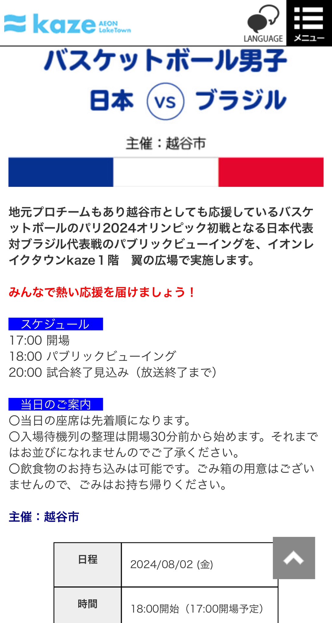 日付変わって本日、パブリックビューイングが行われます#Akatuskijapan#Paris2024#越谷市#越谷レイクタウン駅#イオンレイクタウンkazehttps://laketownkaze-a..