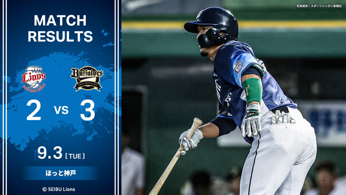 [9/3結果]L2-3B2回#柘植世那選手の適時打で先制。その後逆転されるも、直後に#外崎修汰選手の犠飛で同点とします。しかし、6回に勝ち越しを許し追う展開に。中継ぎ陣が無失点に抑えますが、あと一打が..