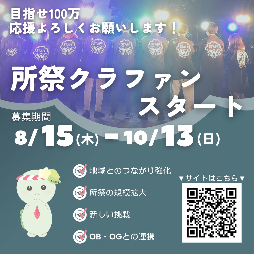 所祭クラファンスタート今年度より所祭初のクラウドファンディングを行うことにしました!募集期間は10/13(日)までです!詳細はこちらのURLからご覧ください。https://readyfor.jp/p..