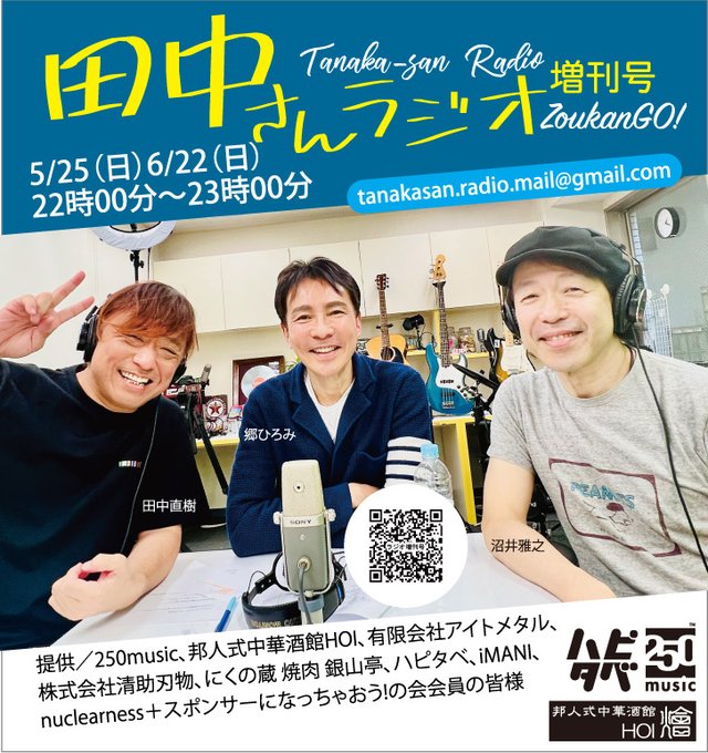 特別番組田中さんラジオ増刊号5/25(日)22:00~23:00ゲスト:#郷ひろみさんコンサートバンドのリーダー#田中直樹キーボード#沼井雅之との他では聴けないトークをたっぷり1時間お届けしますお楽し..