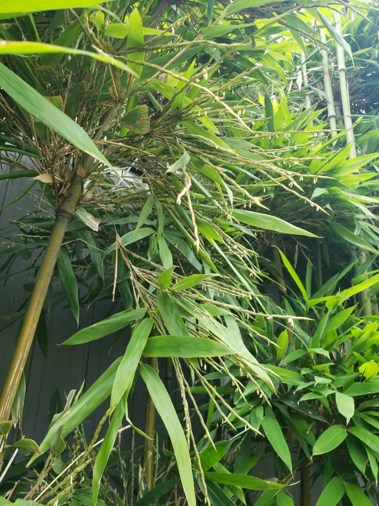 庭に生えているマダケを剪定しようとしたら見慣れない枝を見つけました。調べると120年に1度しか咲かないとも言われるマダケの花でした。一本だけではなく複数のマダケで同時に咲いていました。マダケは地下茎でつながっているため同調して咲くそうです。この場所に植えられてから少なくとも40年以上経過していますが、初めて見る光景です。開花したマダケはこの後で一斉に枯れてしまうとのこと。節目を迎えるマダケを見守りたいです。