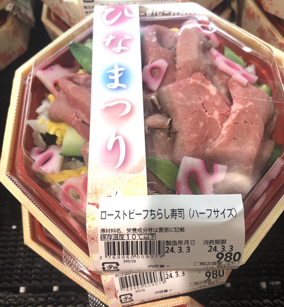 〈#精肉あづま〉 ローストビーフちらし寿司見つけました👀 お魚よりお肉派の方いかがですか? オトナのおつまみも一緒に買って、ご家族みんなで、ひなまつりを楽しみましょう🎎 #東急フードショー #渋谷 #ひなまつり #黒毛和牛 #ローストビーフ #ちらし寿司