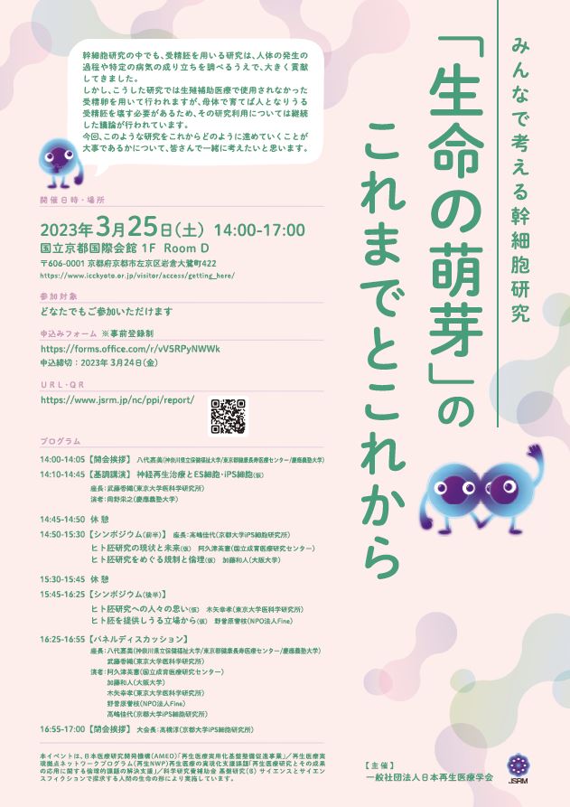 当センター認知症未来社会創造センターメディカルゲノム・バイオマーカーチーム専門部長八代嘉美が登壇するシンポジウムは明日開催予定です。詳細は、以下のURLからご覧ください。 #シンポジウム #受精胚 #研究 #健康長寿