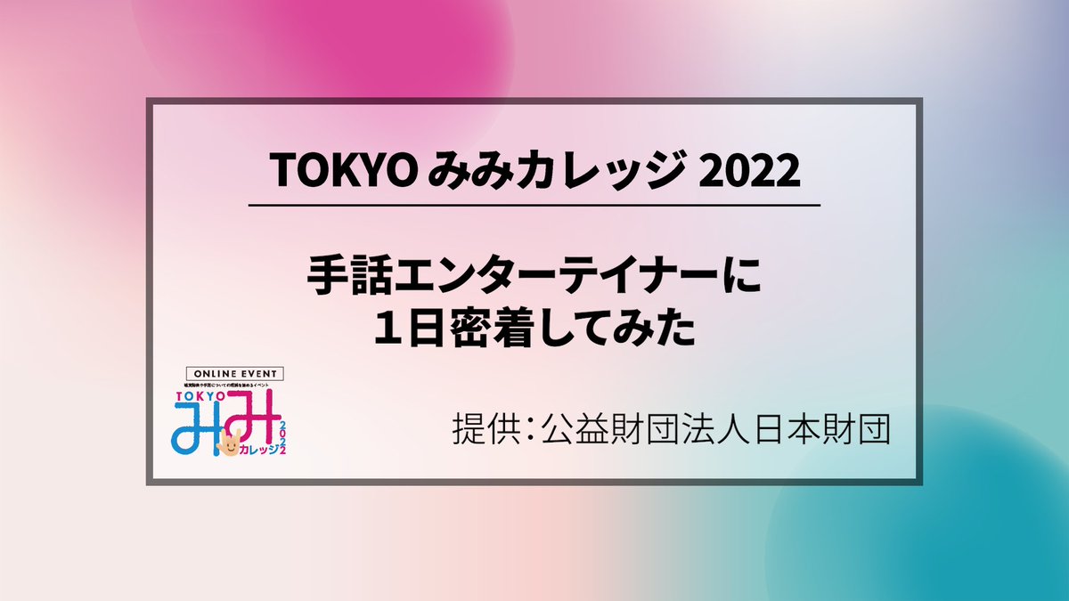 【#TOKYOみみカレッジ】★掲載動画を紹介します★本日紹介するのは『【耳の聞こえないろう者】手話エンターテイナーに1日密着してみた』。日本財団様よりご提供いただきました。1411