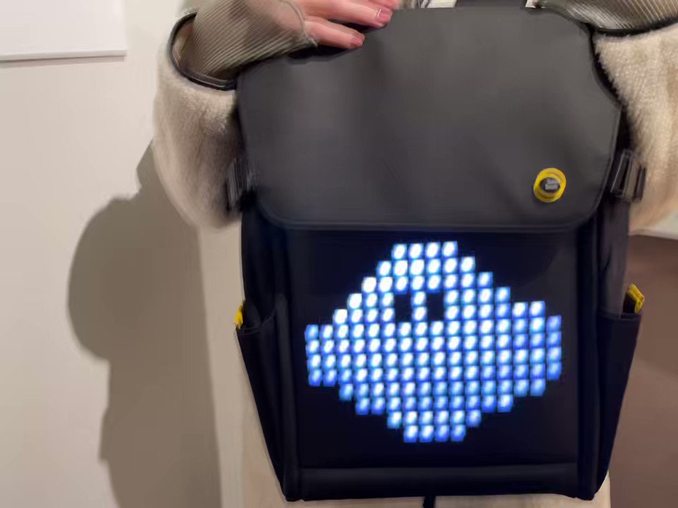 思わず「!?」と手がとまってしまいました‥‥!なんと、LED板になっているバッグに、MOTHERのてきたちが流れているのです!このドット絵も自作で用意されたようで、つくる画面も見せてくださったのですが..