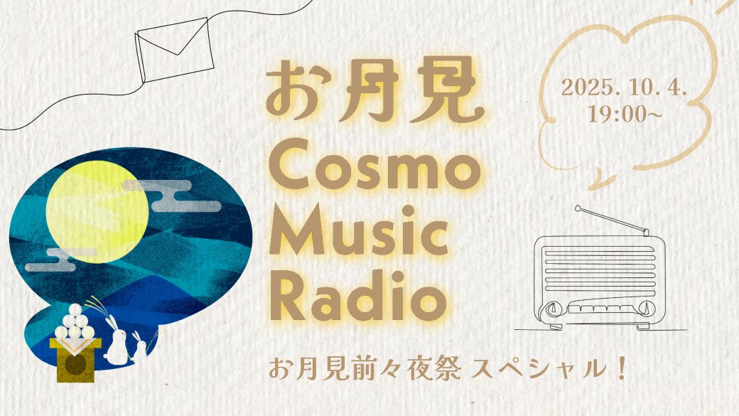 10/4(土)19:00~開催!お月見CosmoMusicRadio~お月見前々夜祭スペシャル!~明日のCosmoMusicRadioはお月見特別バージョン!特設お便りフォーム・詳細はこちらから!ht..