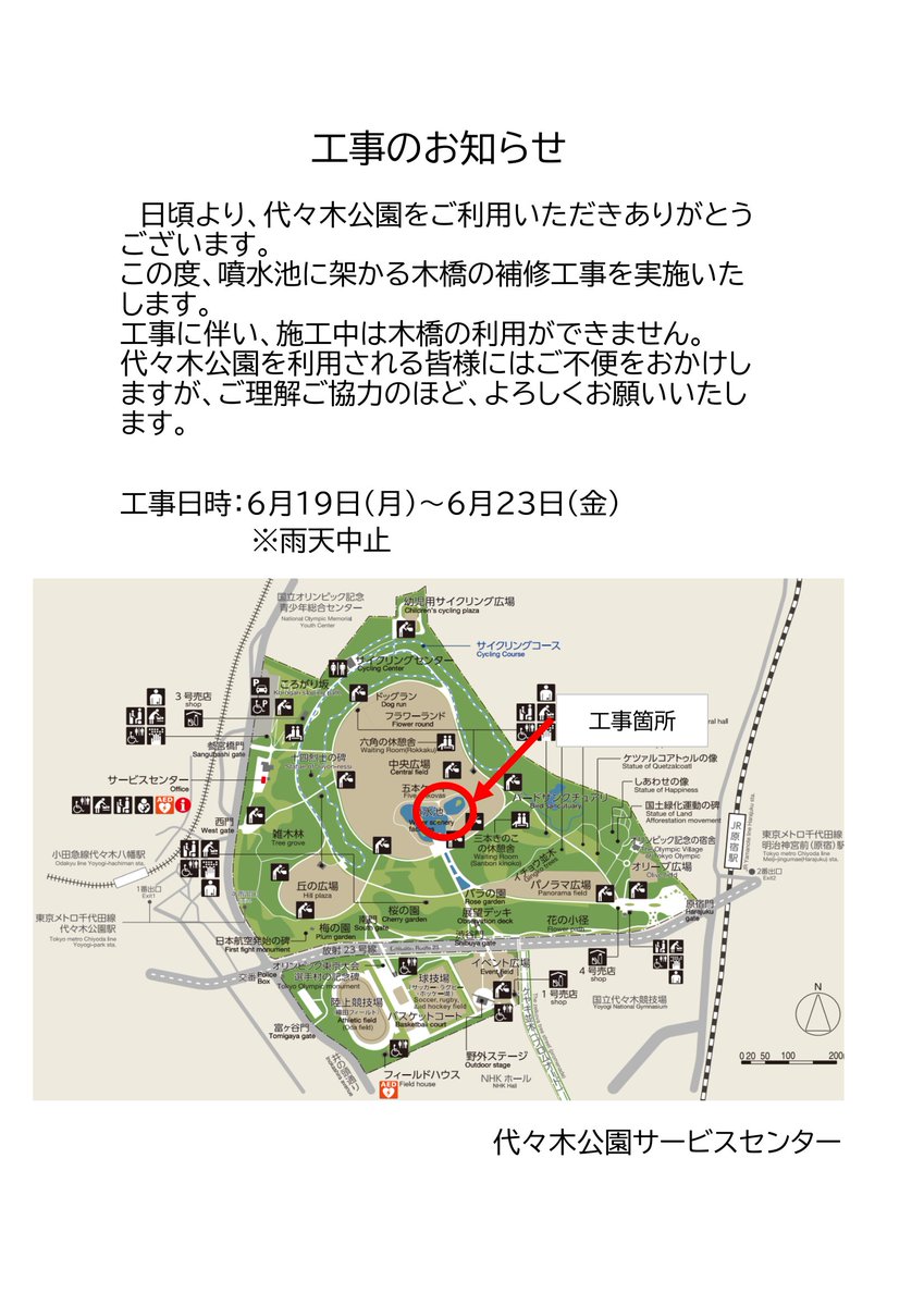 🚧工事終了のお知らせ🚧噴水池に架かる木橋の補修工事が終了しました。ご協力ありがとうございました(^▽^)/※現在は通行できます😊😊😊0410