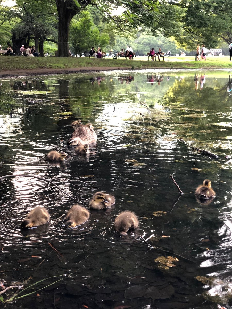 爽やかな風が吹く人気スポット・噴水池に、ふっわふわの赤ちゃんカルガモが🐣来園者の皆さんは、公園で生まれた新しい命に感動し、温かく見守ってくれています🥰01173