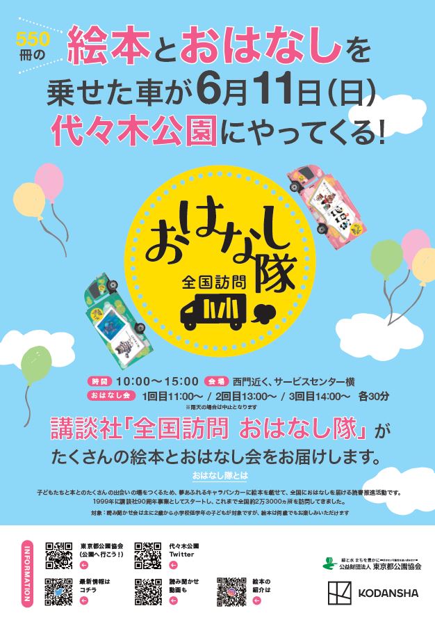 【☔️雨予報のため開催中止】明日(6/11)開催予定だった絵本の読み聞かせ会ですが、雨予報ため開催中止となりました。🚚次回は7月8日(土)を予定しておりますので是非ご参加ください!次回は晴れますように..
