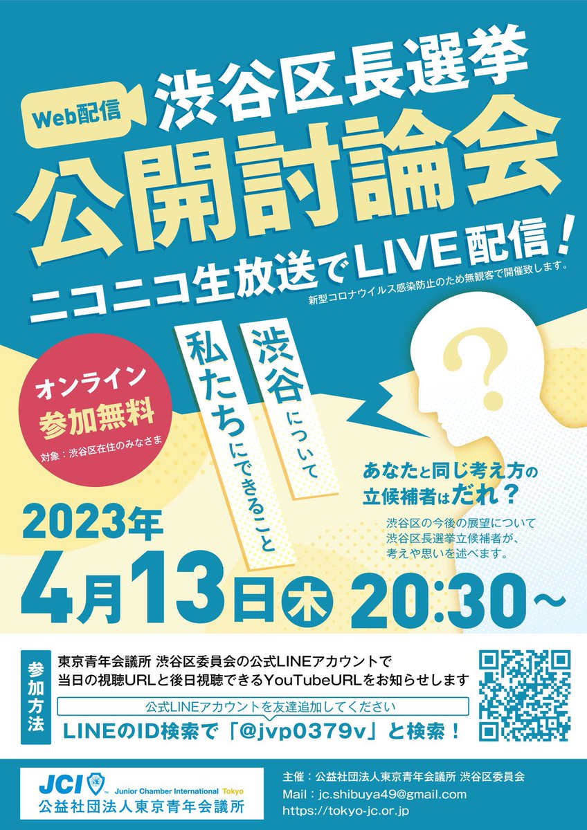 2023#渋谷区長選挙公開討論会に渋谷新聞副代表がファシリテーターとして参加します!4/13(木)20:30〜パネルセッションやクロストークで候補者の想いを伺い、区民の皆さんの投票の一助になれば幸いで..