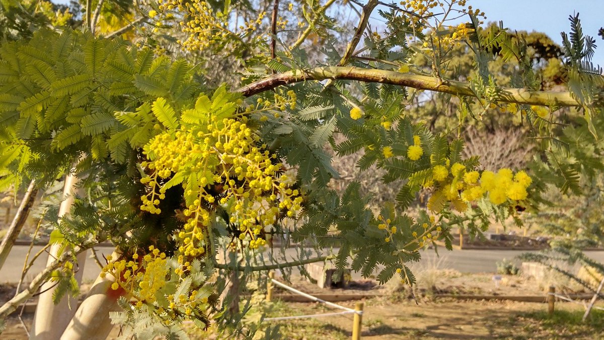 💐開花情報💐 来園者たちの念願叶って1年前に再植樹したミモザ。黄色いポンポンの花が咲き始めました! 3月8日は国際女性デーで、ミモザの日とも呼ばれているそう。1ヶ月先、見頃と重なるといいですね。大切に見守りましょう!