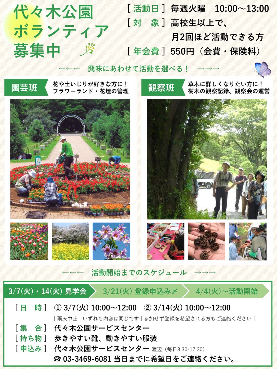 🌱代々木公園ボランティア募集中🌱Twitterで度々登場しているボランティアの仲間に加わりませんか?活動は毎週火曜。この公園が庭になるお花大好き「園芸班」と、旬の木を記録したり自然教室やったりの「観察..