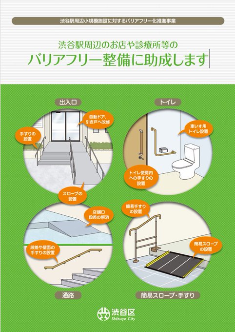 【お知らせ】障がい者や高齢者等が、安心して渋谷の街の魅力である小規模な路面店などを訪れ、楽しむことができるようにするため、渋谷駅周辺の小規模施設に対するバリアフリー整備費用の一部を助成します。詳しくは..