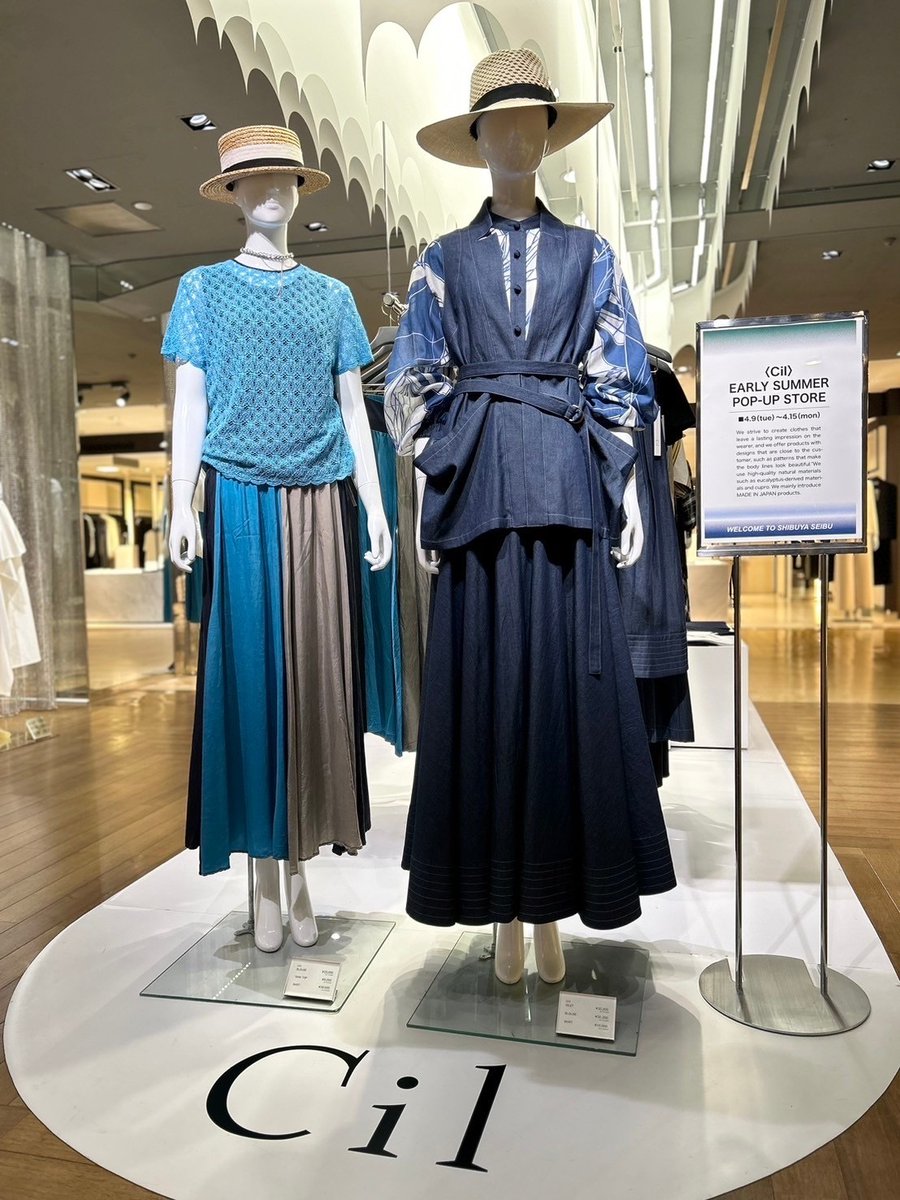 〈Cil(シル)〉EARLYSUMMERPOP-UPSTORE■4月15日(月)まで■A館5階=プロモーションスペース質の良い#天然素材を多用し、体のラインが美しく見えるようなシルエットにこだわるパタ..
