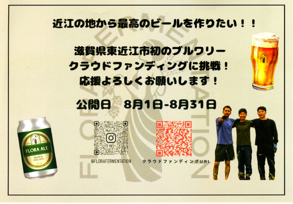 東近江市初の#ブルワリー(クラフトビールの小規模醸造所)の「#フローラファーメンテーション」(#東近江市)は、醸造所をスタートさせるための資金の一部をインターネットで集めるクラウドファンディングサイト..