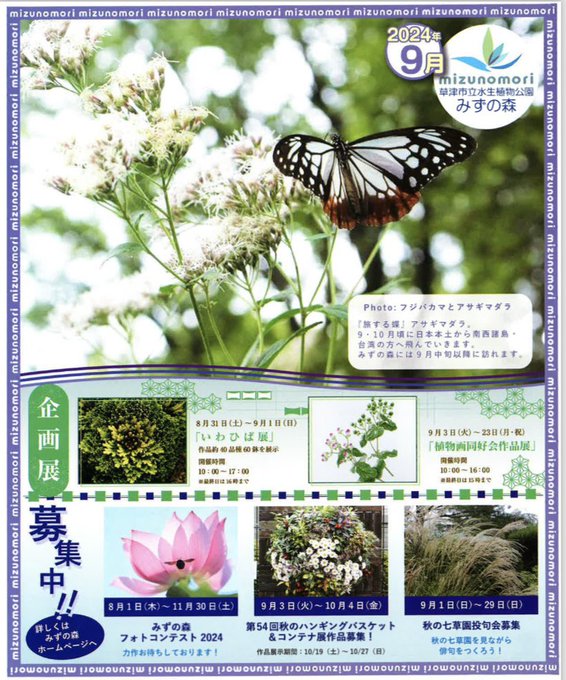9月15日(日)に、みずの森に遊びに行ってきたたび植物画同好会のみなさまのステキな作品をたくさん見たたびみんなが描いた秋の七草ぬりえもキレイだったたび#滋賀県#草津市#たび丸#みずの森