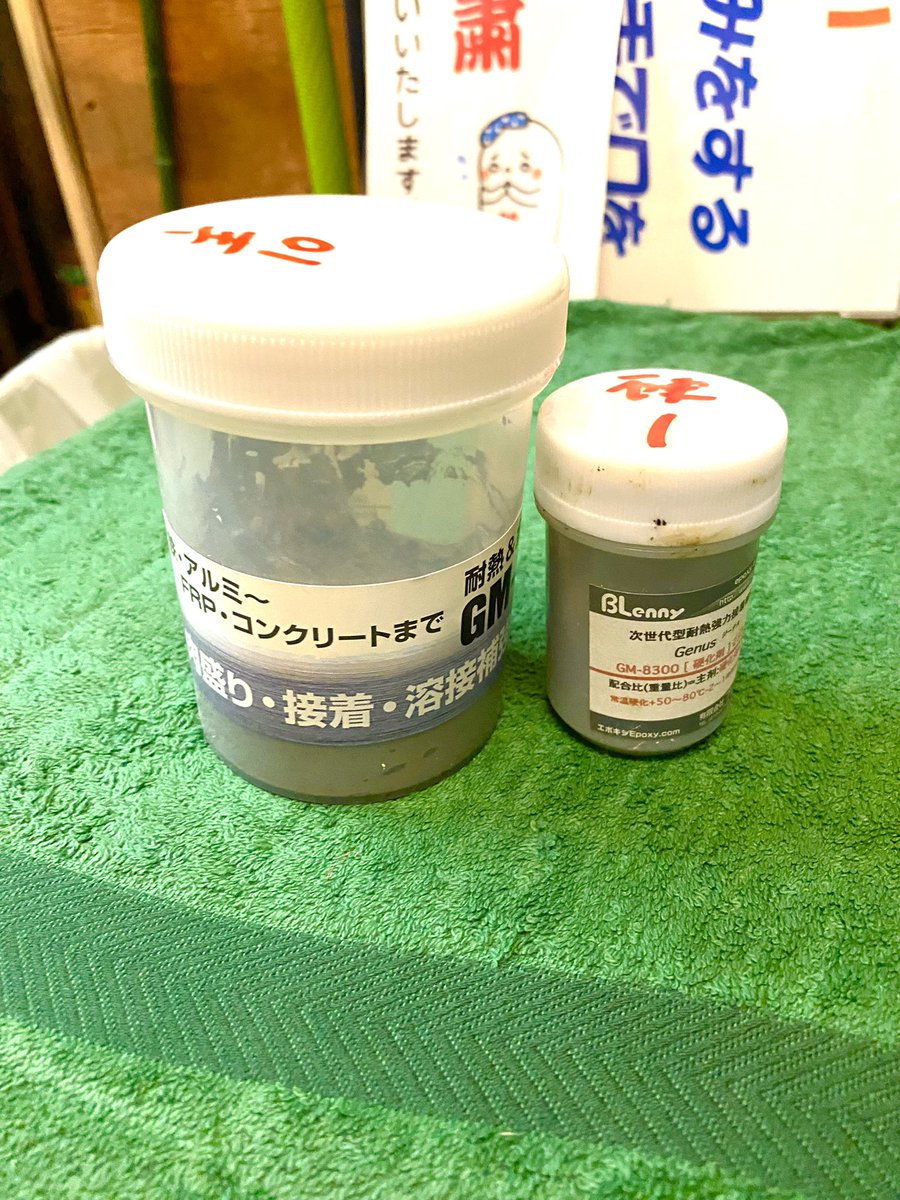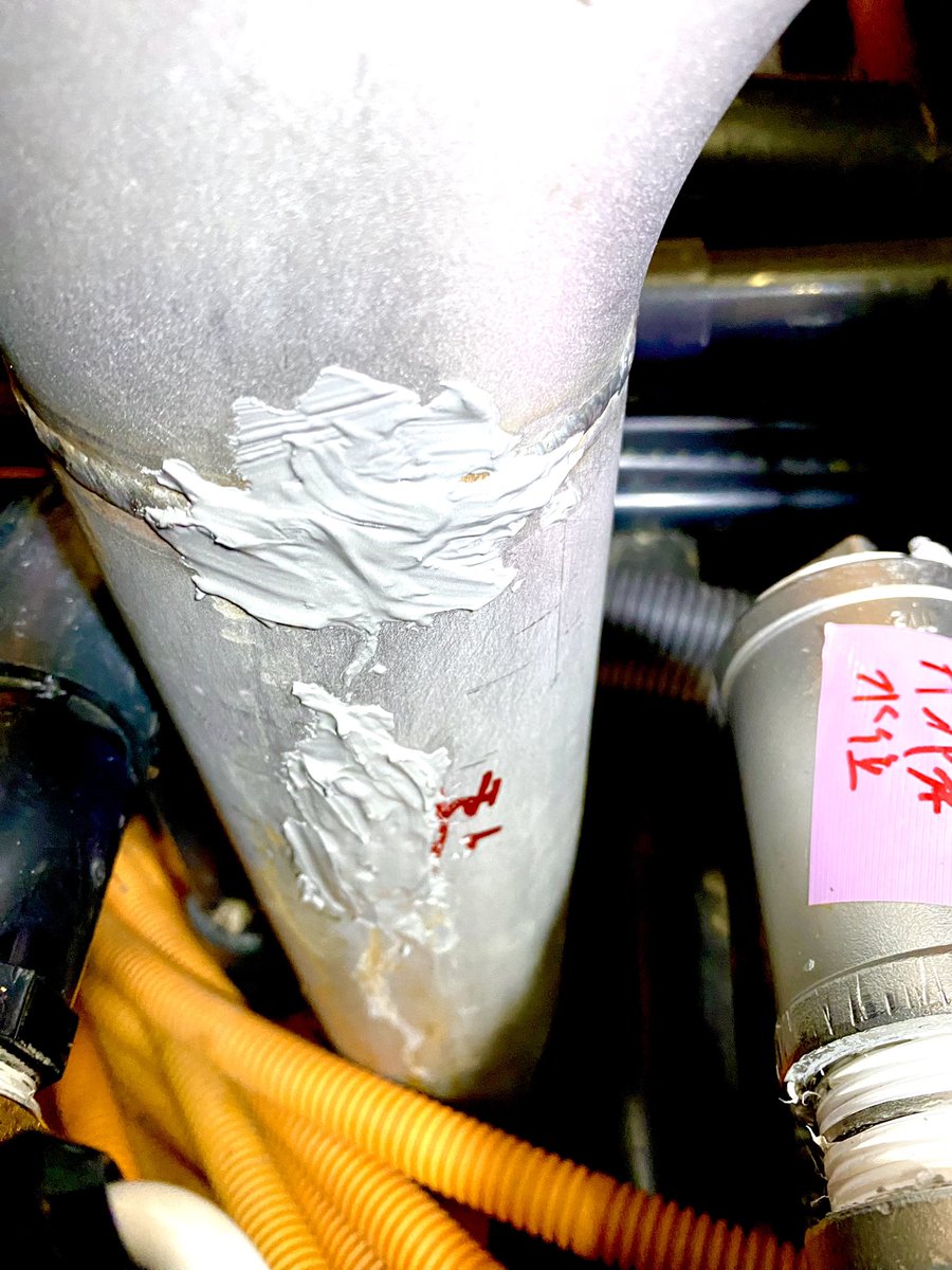 配管の湯を抜きパテを塗りました😅ここから5時間程硬化させましょう
