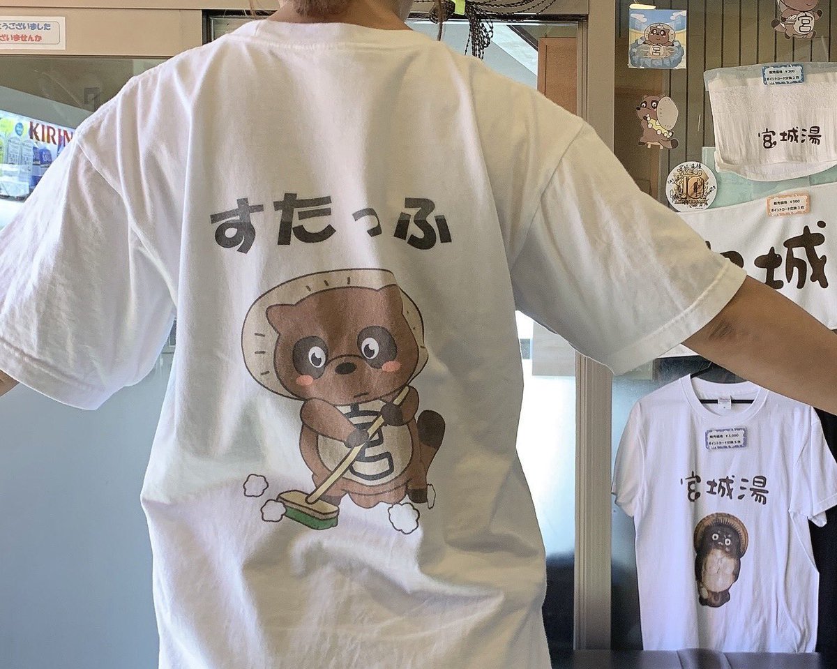 お気に入りのスタッフTシャツです👕たぬきさんがお掃除してくれてますね🧹かわいいです🥰少し前にステッカーがリニューアルされ(表面がツヤッとしました✨)お掃除たぬきさんが仲間入りしました😉わたしはスマホに..