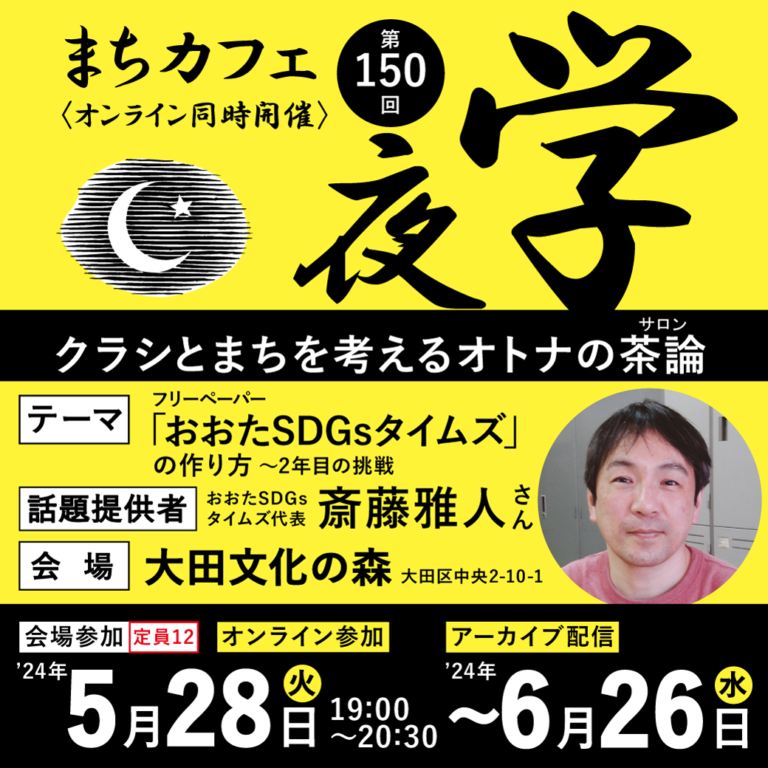 \\まちカフェinformation//【第150回#まちカフェ夜学オンデマンド配信中】●テーマフリーペーパー「#おおたSDGsタイムズ」の作り方~2年目の挑戦6/26(水)までアーカイブ配信中!視聴..