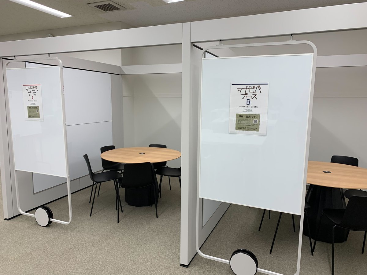 グループワークができるマナビバブース。午前中はわりと空いていて、もっと使われるといいなと思っています。ゼミの活動や、数名での勉強・試験対策に、ぜひご利用ください。 マナビバブースの予約はこちらから(MO) https://select-type.com/rsv/?id=uRrqoXNG0Pw… #SMCリニューアルプロジェクト