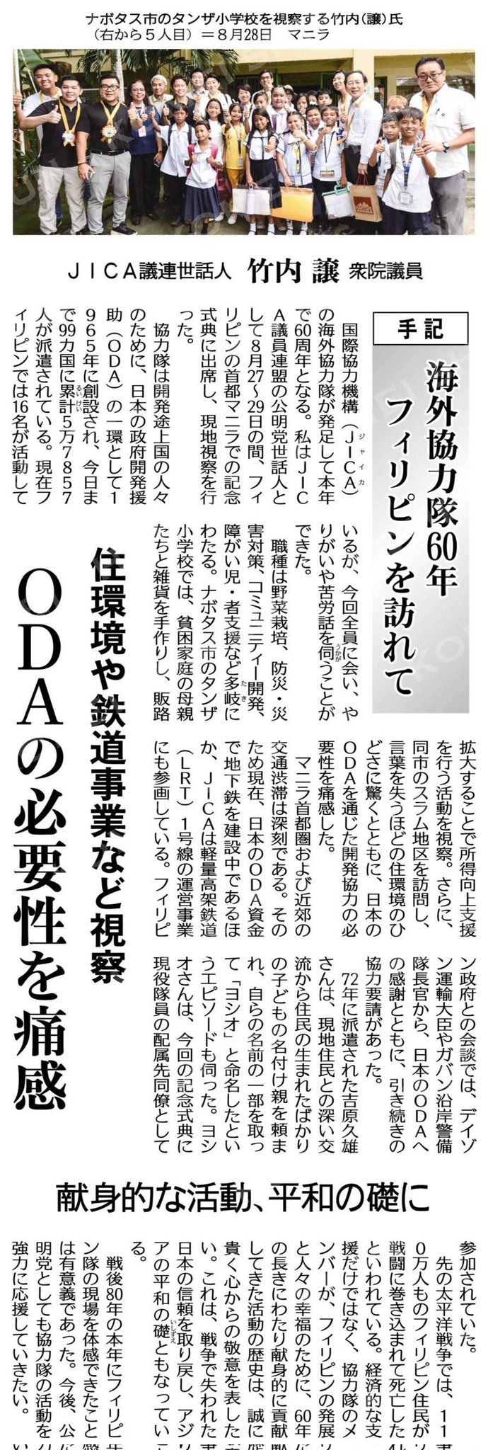 (手記)海外協力隊60年、フィリピンを訪れて/JICA議連世話人・竹内譲衆院議員/住環境や鉄道事業など視察、ODAの必要性を痛感 #公明新聞電子版 2025年09月08日付 https://komei.or.jp/newspaper-app/