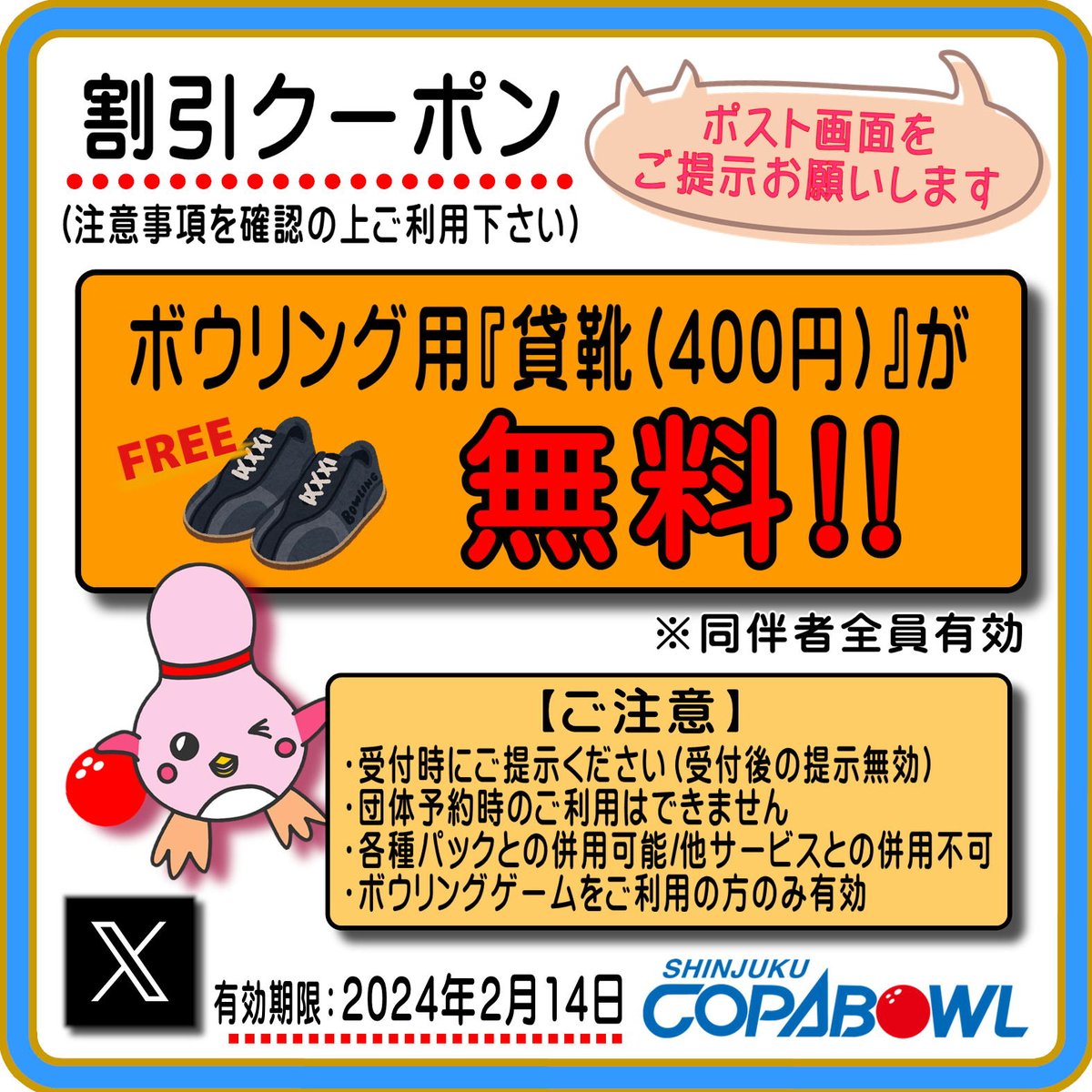 💡お得な割引クーポン配信💡コチラのポストを受付でお見せいただくと、【ボウリング貸靴(400円)が無料‼】ご提示で同伴者様みなさま適用となります😊画像内のご注意事項をご確認の上ご利用くださいませ🙇🙇&l..