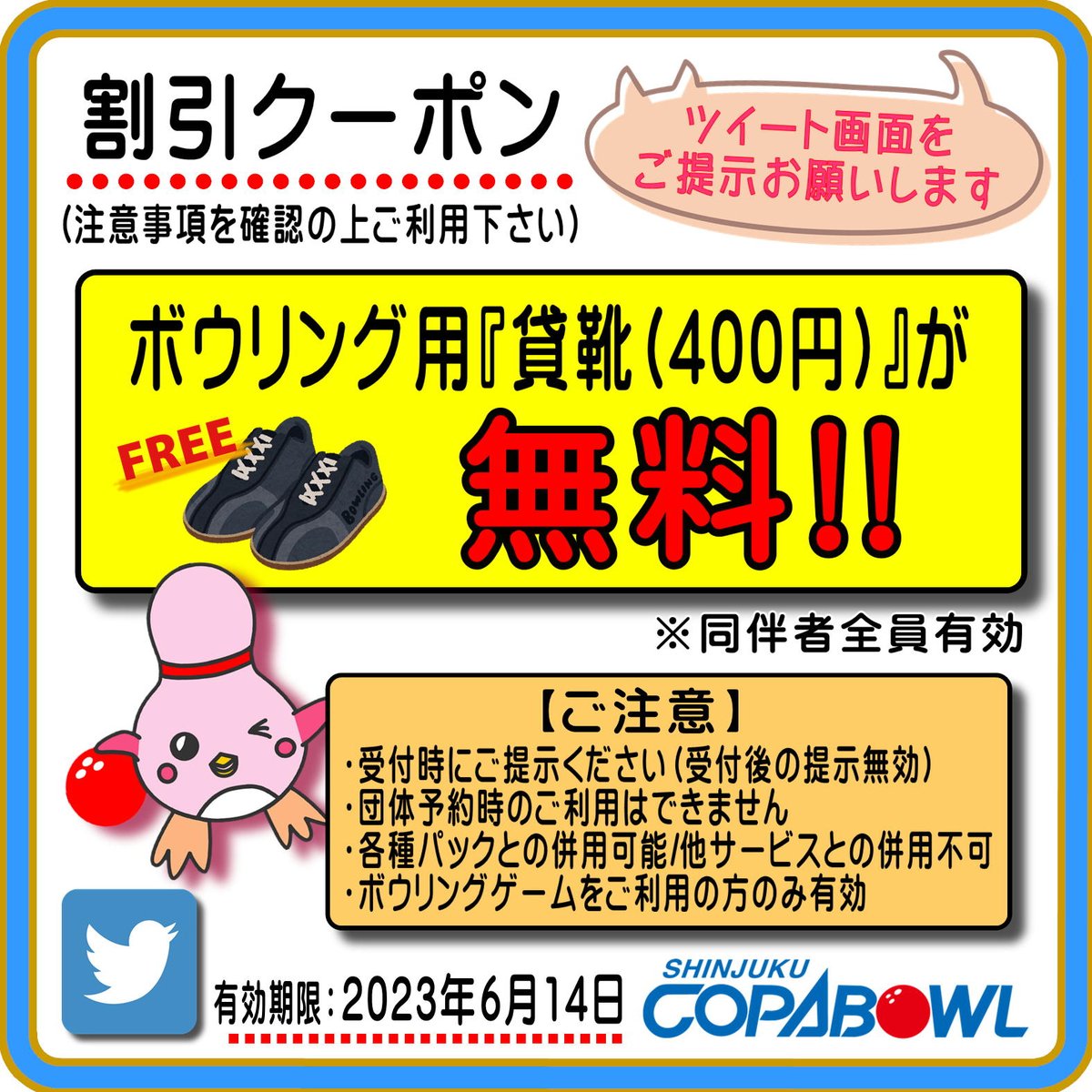 💡お得な割引クーポン配信💡コチラのツイートを受付でお見せいただくと、【ボウリング貸靴(400円)が無料‼】ご提示で同伴者様みなさま適用となります😊画像内のご注意事項をご確認の上ご利用くださいませ🙇🙇&..