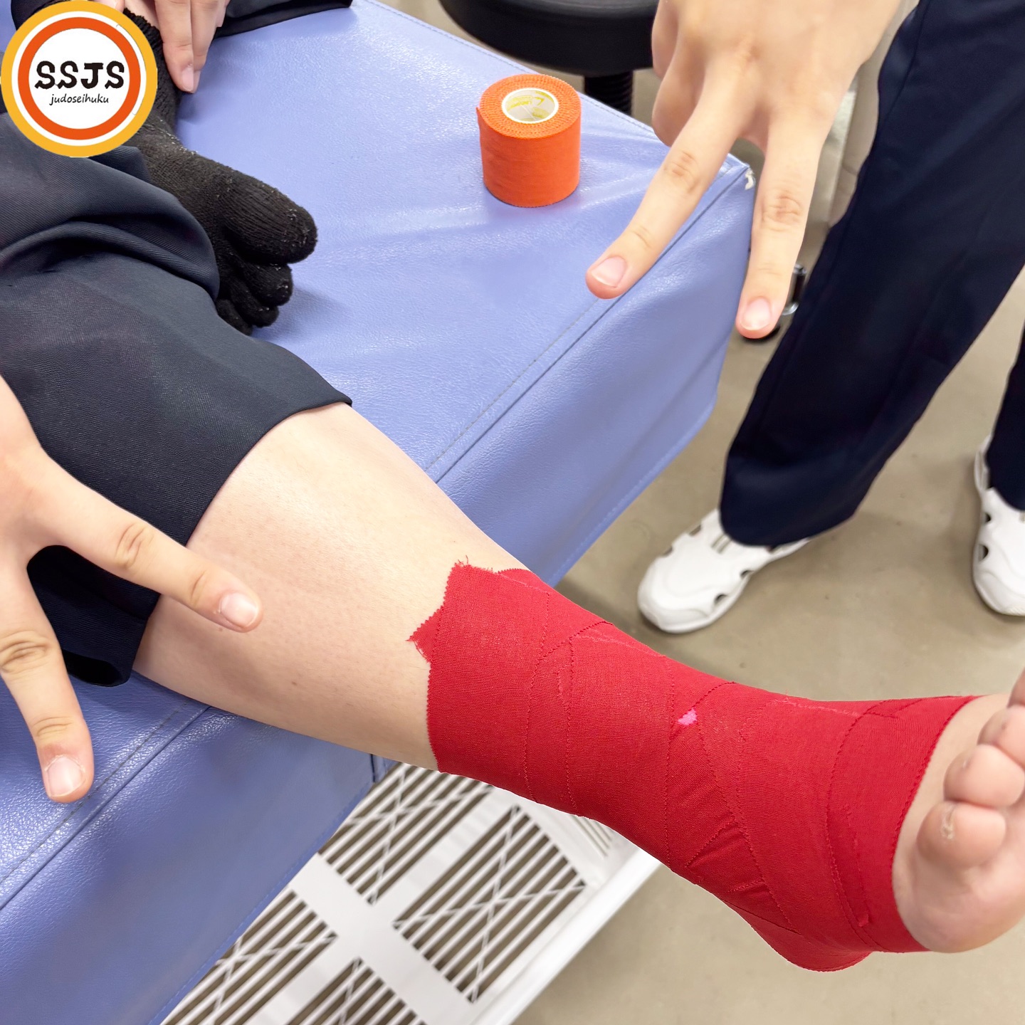 オープンキャンパス中に、学生が巻いた綺麗なテーピング‼️3年生になるとここまで成長しちゃって🥹うれしい..