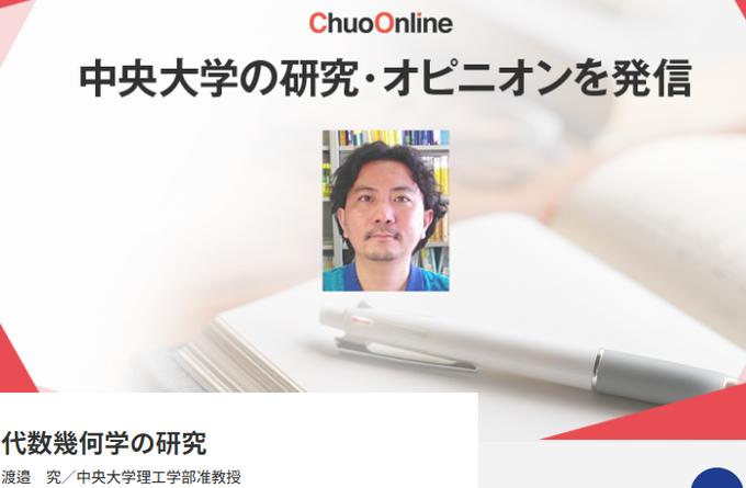 #中央大学@chuoonlineより代数幾何学の研究渡邉究(わたなべきわむ)/中央大学理工学部准教授専門分野代数幾何学https://yab.yomiuri.co.jp/adv/chuo/resear..