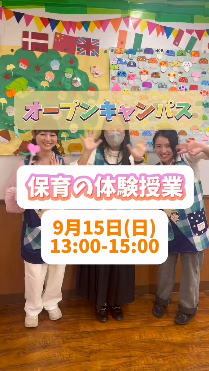 9/15(日)のオープンキャンパスは「子どもたちが楽しめる環境」について実際に体感してもらいます保育業界に興味ある方は必見です学生によるキャンパスツアーも実施します!お申込はホームページよりhttps..