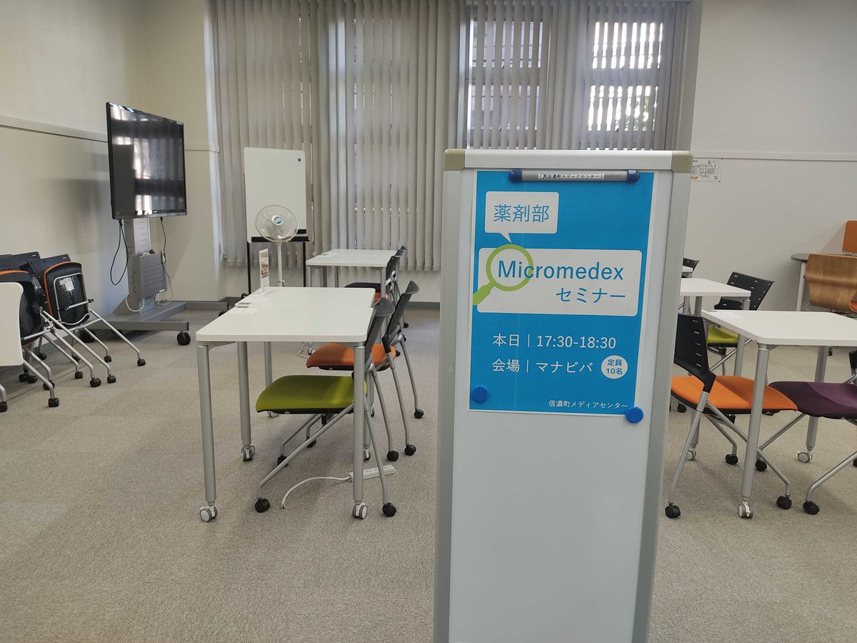 本日は夕方から薬剤部向けのセミナーです。会話やディスカッションができるマナビバでは、大きなディスプレイもホワイトボード、可動式の机や椅子がありますので、セミナー開催や発表練習にピッタリ!ぜひご活用くだ..