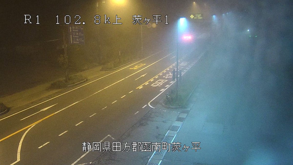 通行注意/5月21日1時30分|国道1号 函南町桑原(箱根峠、神奈川県境)において、濃霧が発生しており視界が悪化しています|注意して通行をお願いします。#道路情報 #国道1号
