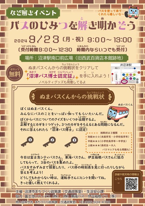 【なぞ解きイベントバスのひみつを解き明かそう】バスの日にちなんだなぞ解きイベント「バスのひみつを解き明かそう」を開催します!子供から大人まで楽しめるイベントになっていますので、ぜひご参加くださいhtt..